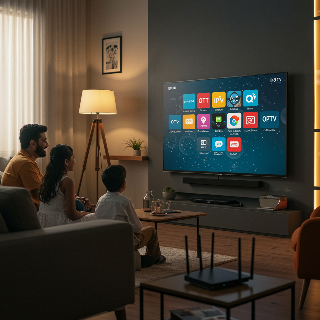 With IPTV, you get access to a wide range of Indian and international channels in both HD and SD formats, along with Video on Demand (VOD), so you can watch your favorite shows, movies, or programs anytime, anywhere. The service also supports features like pause, rewind, and catch-up TV, giving you complete control over your viewing experience.